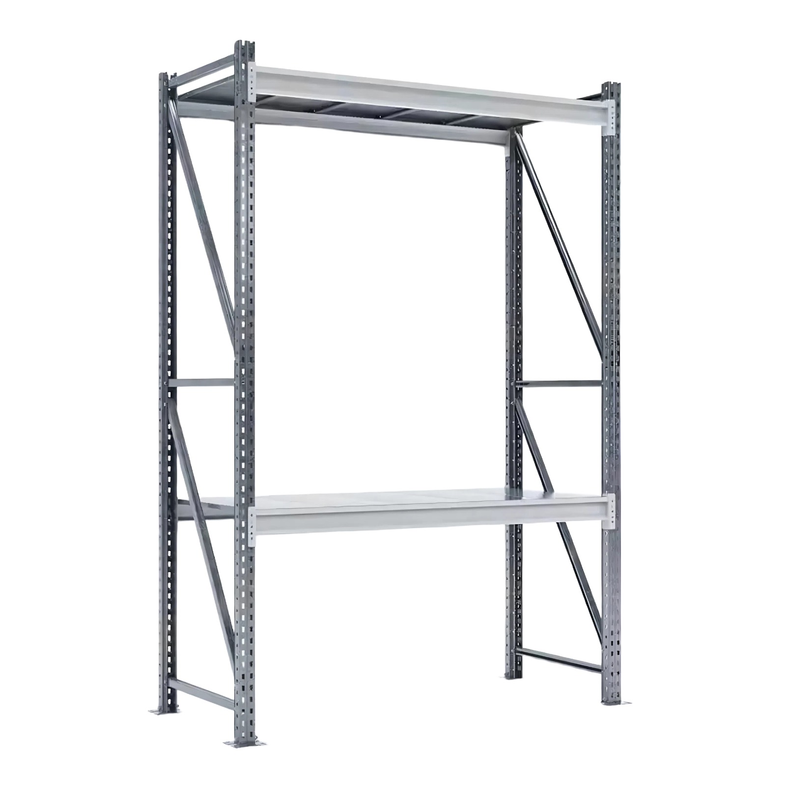 Конфигурация с двумя уровнями обеспечивает быстрый доступ к товару и широко применяется в зонах приемки, хранения и комплектования. Железный стеллаж подходит для коробок, инструмента и различных типов грузов.